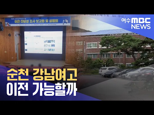 ◀ 앵 커 ▶ 지난 2021년부터 이전을 추진해온 순천 강남여고가 또 다시 학교를 이전하겠다며 최근 설명회를 열었습니다. 고교학점제를 대비해야 한다는 게 학교측의 입장인데, 인근 주민들이 강하게 반발하고 있어 추진이 만만치 않아 보입니다. 강서영 기자입니다. ◀ 리포트 ▶ 지난 15일 열린 순천 강남여고 이전 추진 설명...