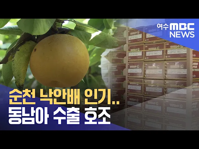 ◀ANC▶ 당도가 높기로 소문난 순천 낙안배가 요즘 인기가 많습니다. 국내 수요는 주춤하지만 동남아 수출길로 눈을 돌리면서 재배 농가마다 높은 소득을 기대하고 있습니다. 최우식 기자가 보도합니다. ◀VCR▶ 순천시 낙안면 이곡리. 1ha 남짓한 과수원에 탐스럽게 익은 배가 가을 수확을 기다리고 있습니다. 낙안 배는...