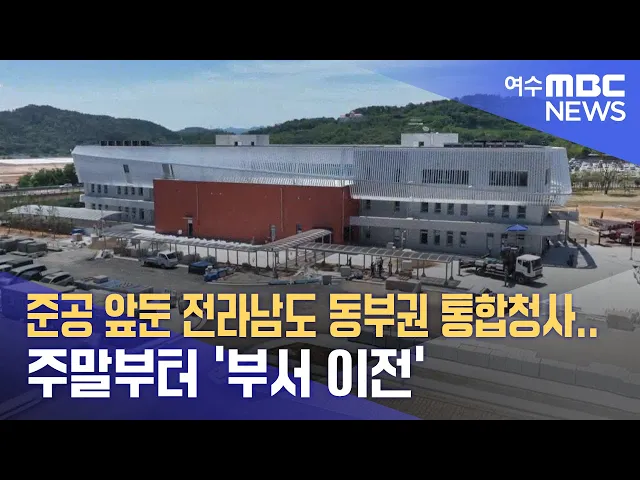 ◀ANC▶ 순천 신대지구에 들어서는 전라남도 동부권 통합청사가 준공을 앞두고 있습니다. 이번 주말부터는 부서가 순차적으로 이전해 이달 말에는 완전한 4개 실˙국 체제를 갖출 전망입니다. 문형철 기자입니다. ◀VCR▶ 청사에 마련된 사무실에 책상이 설치됩니다. 곳곳에서는 시설물을 점검하고 정비하는 작업이 한창입...