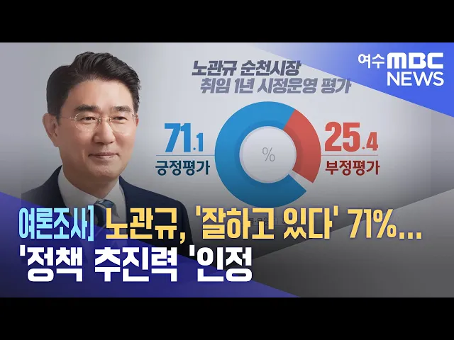 ◀ANC▶ 노관규 순천시장에 대해서는 긍정 평가가 71%, 부정적인 평가는 25%였습니다. 긍정 평가의 이유는 정책의 추진력, 부정 평가는 시민 소통 부족 때문이라는 응답이 많았습니다. 가장 시급햔 현안으로는 순천대 의대 유치가 가장 높게 나왔습니다. 최우식 기자가 보도합니다. ◀VCR▶ 노관규 순천시장이 지난 1년 ...