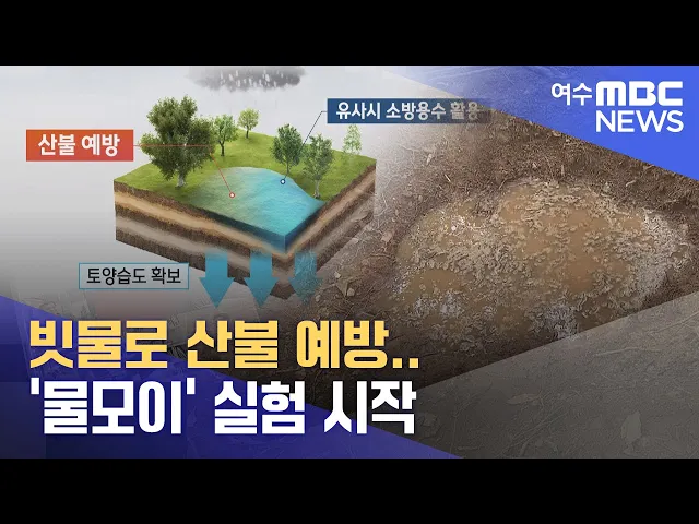 ◀ANC▶ 작은 빗물 저장시설인 '물모이'가 새로운 산불 예방 시설로 주목받고 있습니다. 산이 빗물을 머금게 하면 산불 확산을 막을 수 있고 급할 땐 소방용수로도 사용할 수 있다는데요. 전남에서는 처음 순천에서 진행된 물모이 실험 현장을 강서영 기자가 다녀왔습니다. ◀VCR▶ 순천의 한 야산에 나뭇가지로 둘러싸인...
