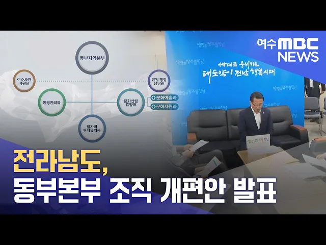 ◀ANC▶ 전라남도가 발표한 조직 개편안을 두고 동부권 주민들의 반응은 차갑습니다. 지역 정치권과 주민의 반대가 커질것으로 보이는 가운데, 조직 개편안이 도의회 문턱을 넘을 수 있을지는 미지수입니다. 이어서 유민호 기자가 보도합니다. ◀VCR▶ 김영록 지사는 지난해 지방선거 당시 순천을 찾아, 동부지역본부를 4...