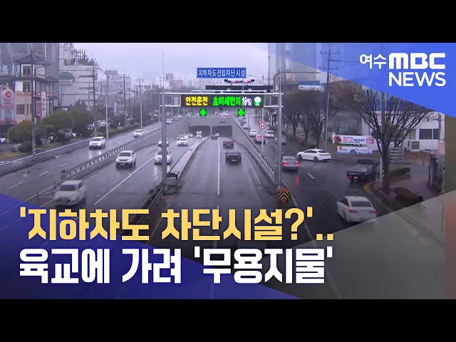 ◀ANC▶ 부산의 침수된 지하차도에서 발생한 참사를 계기로 전국의 지하차도마다 침수시 진입 차단 시설이 설치되고 있는데요. 최근 순천 조례지하차도 앞에도 같은 시설이 설치됐는데, 정작 육교에 가려져 전광판이 보이지 않는 황당한 일이 벌어졌습니다. 강서영 기자입니다. ◀VCR▶ 순천 조례지하차도로 향하는 6차선...