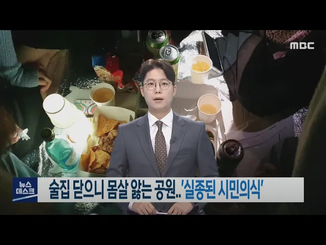 ◀ANC▶ 밤 10시 이후 영업 금지가 지속되고 날씨도 선선해지면서 도심 공원이 밀려드는 음주객들로 몸살을 앓고 있습니다. 코로나 감염 우려가 높아지는 것은 물론, 쓰레기 무단 투기로 환경 오염까지 부추기고 있습니다. 강서영 기자입니다. ◀VCR▶ 지난 23일 밤 순천 조례호수공원. 연휴가 끝난 평일인데도 돗자리를 ...