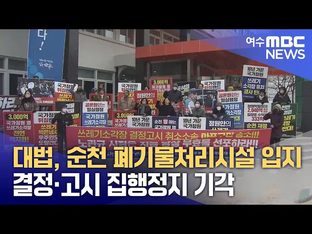 순천시가 대법원이 '쓰레기 소각장 반대 범시민연대'가 제기한 폐기물처리시설 입지 결정·고시 집행 정지 신청에 대해 최종 '기각' 결정을 내렸다고 밝혔습니다.대법원은 해당 사안에 상고 이유 없음이 명백하다며심리불속행으로 기각했습니다.범시민연대는 순천시의 연향들 차세대 공공자원화시설 입지 결정과 고시를 대상...