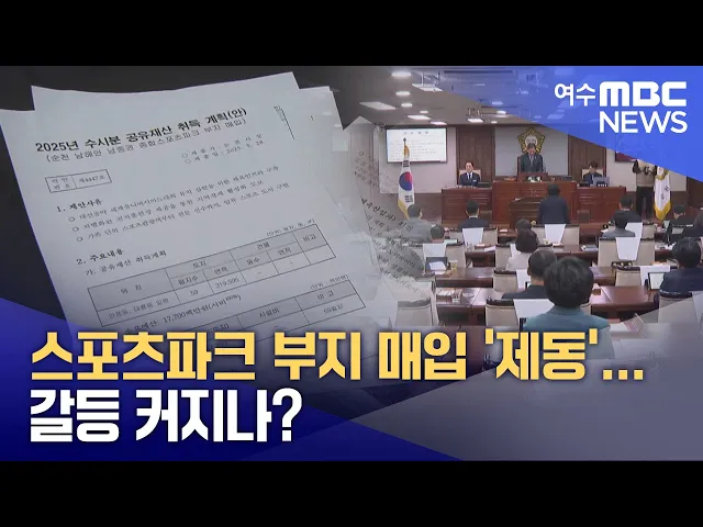 ◀ 앵 커 ▶순천 종합스포츠파크 건립을 위한부지 매입 계획이시의회 상임위원회에서 부결됐습니다.행정 절차 등 여러 측면에서보다 면밀한 검토가 필요하다고 판단한 건데요.순천시는 국비 확보는 물론, 대선 공약인 유니버시아드대회 유치에도차질이 생길 수밖에 없다며 반발하고 있습니다.문형철 기자입니다. ◀ 리포트 ▶순...
