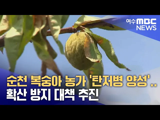 순천지역 복숭아 농장에서 탄저병 양성 반응이 나타나지자체가 확산 방지에 나섰습니다.순천시는 지난달 말 일부 복숭아 농장에서탄저병 의심 증상이 발견돼 검사를 진행한 결과 양성으로 확인됐다고 밝혔습니다.순천시는 예비비를 투입해 복숭아 재배 농가에 약제를 지원하고, 오는 15일까지 농약 살포 교육 등 집중 지도...