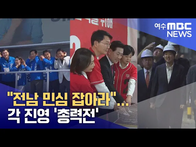 ◀ 앵 커 ▶제21대 대통령 선거의 공식 선거운동이 막을 올리면서, 지역 정치권도 출정식을 갖고 총력전에 뛰어들었습니다.전남 민심을 잡기 위한 거대 양당의 신경전 속에서 개혁신당의 이준석 후보는 직접 여수를 찾아 첫 선거운동을 벌였습니다.문형철 기자입니다. ◀ 리포트 ▶파란 옷을 입은 국회의원과 시·도의원,당직자...
