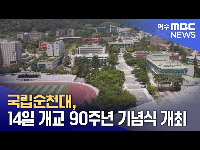 국립순천대학교가모레(14) 학내 70주년기념관에서개교 90주년 기념식을 개최합니다.국립순천대는 지난 1935년우석 김종익 선생이 설립한순천공립농업학교를 모태로 출발했으며,1991년 국립종합대학으로 승격했습니다. 이번 기념식은 미디어 퍼포먼스,자랑스러운 순천대인 시상,축하 공연 등 다양한 행사가 펼쳐집니다. 국립...