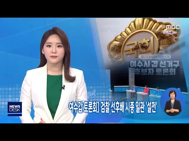 ◀ANC▶이번 국회의원 총선에서 여수갑 선거구에 출마한 후보자들의 토론회가 오늘 여수MBC 에서 열렸습니다. 선거가 6일 앞으로 다가오면서 후보자들 모두 갈길이 바쁜 시점인데요, 특히 주철현, 이용주 후보 시종일관 공방을 벌이며 토론회를 뜨겁게 달궜습니다. 박광수 기자가 보도합니다. ◀END▶ 전직 여수시장과 ...