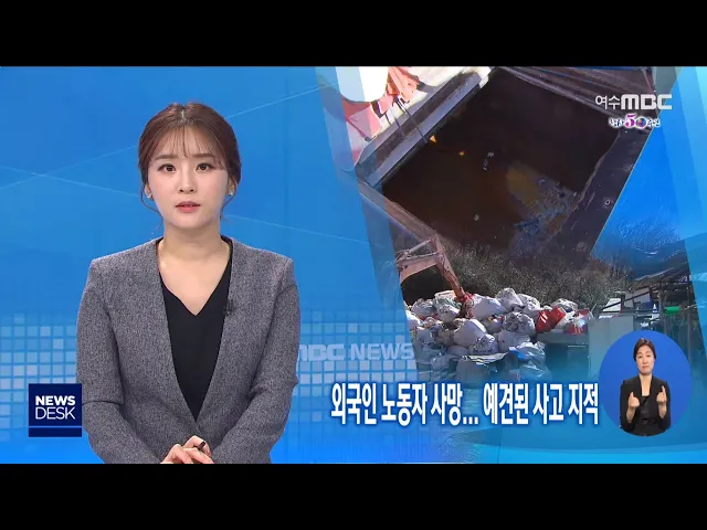 ◀ANC▶지난 주말, 순천의 한 재활용 폐기물 처리업체에서 외국인 노동자가 숨졌습니다. 그런데 사고 경위를 조사해보니예견된 사고였다는 지적이 나오고 있습니다. 조희원 기자입니다. ◀VCR▶압착기와 컨베이어 밸트 주변에 재활용 쓰레기들이 어지럽게 널려 있습니다. 쓰레기를 압착하는 기계는 본래 형체를 알아보기...