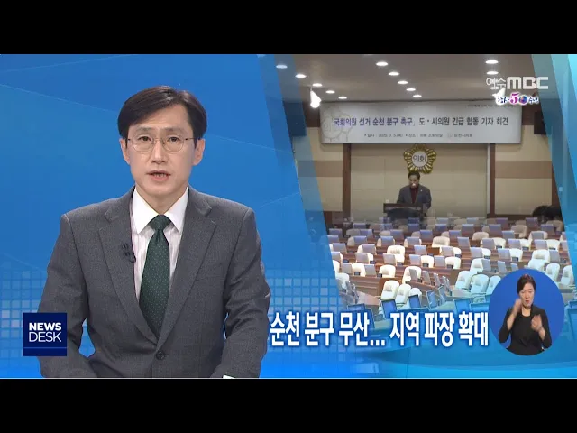 ◀ANC▶선거구획정위원회의 순천 분구 안이 하루 만에 국회에서 거부됐습니다.복잡한 이해관계에 따라 분구가 무산되면서 지역 내 파장도 만만치 않은 데요.지역의 정치적 위상을 걱정하는 목소리와 함께여야의 위헌적 합의를 지적하는 불만도 곳곳에서 터져 나왔습니다.김종수 기자가 보도합니다. ◀VCR▶올해 총선을 4...
