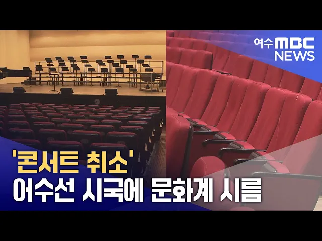 ◀ 앵 커 ▶얼마 전 가수 김장훈이티켓 판매 부진을 이유로순천에서 열기로 한 공연을 취소했습니다.작금의 혼란한 시국에 대한민국의 문화가 죽었다고 밝혔는데요.탄핵 정국이 길어지면서문화계 시름이 깊어지고 있습니다.유민호 기자입니다.◀ 리포트 ▶ 가수 김장훈이 콘서트를 열기로 한순천의 한 공연장입니다.◀ st-up ▶"...