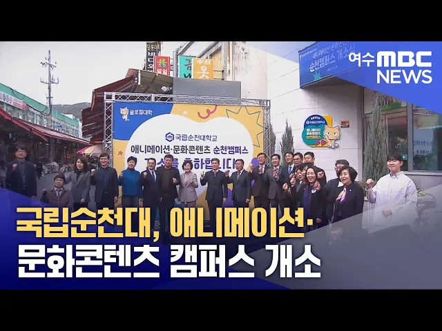 국립순천대학교가 애니메이션·문화콘텐츠 순천캠퍼스개소식을 열고 본격적인 운영에 들어갔습니다.순천캠퍼스는 원도심 시민공익활동지원센터 3층에 위치하며,최신 콘텐츠 제작 환경을 갖춘 강의실과 연구실 등이 마련됐습니다.캠퍼스에서는 실무 중심의 인재 양성을 목표로콘텐츠 기업과 협력한 연계 교육과 취업 지원 프...