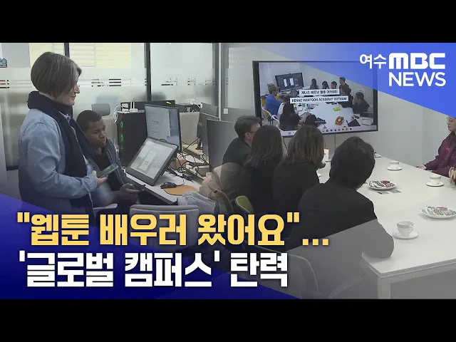 ◀ 앵 커 ▶유럽과 아프리카 국적의 웹툰 작가 지망생들이전문 교육을 받기 위해 순천을 찾았습니다.앞으로 이같은 외국인 교육생 유치가 활발하게 이뤄질 예정이어서웹툰 글로벌 캠퍼스 구축 사업도탄력을 받을 전망입니다.문형철 기자입니다. ◀ 앵 커 ▶글로벌 웹툰센터 2층에 있는웹툰 기업의 사무실.유럽과 아프리카 출신...