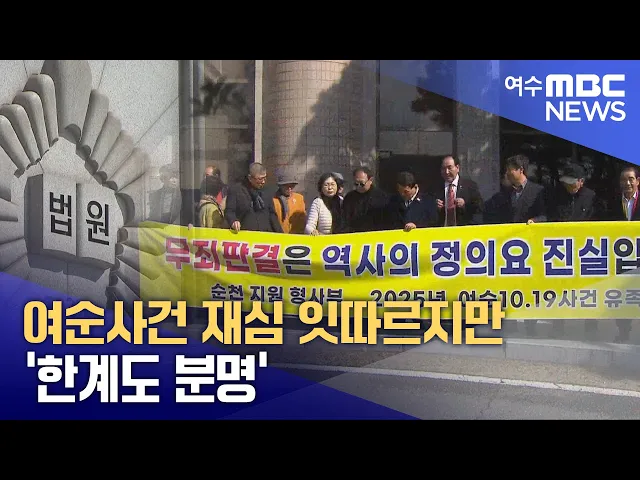 ◀ 앵 커 ▶5년 전, 여순사건 재심 재판에서 민간인 희생자에 대한 역사적인 첫 무죄 판결이 내려졌습니다.이후 지금까지 30명이 넘는 희생자들이억울한 누명을 벗었는데요.재심 절차를 진행 중인 유족도 있지만제도권 밖에 있는 이들이 더 많습니다.김단비 기자입니다.◀ 리포트 ▶여순10·19사건 희생자 유족들이광주지방법원 ...