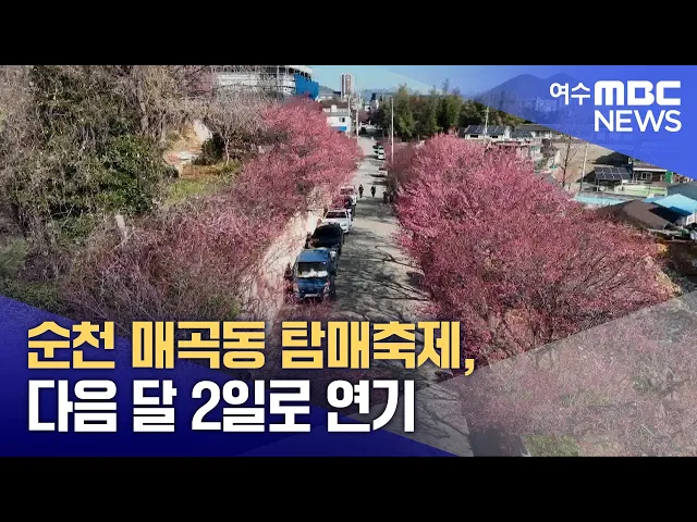 이달 말 예정된 순천 탐매축제가 3월로 연기됐습니다.순천시는 일조량 부족과 기습 한파로 홍매화 개화 시기가 늦어져오는 22일 예정된 탐매축제를 다음 달 2일 개최한다고 밝혔습니다.올해로 7회째를 맞은 탐매축제는매곡동 탐매 희망센터 일원에서 열리며, 매화꽃 만들기 등의 체험 프로그램과 다양한 문화공연 등이 진행...