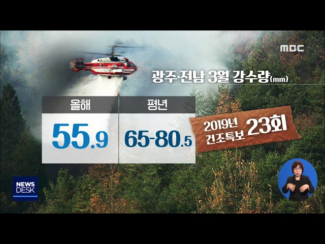 (앵커)강원도에 국가재난 수준의 큰 산불이 난 가운데광주와 전남도 산불로부터 안심할 수 없는 상황입니다.올들어 강수량이 줄어들어건조한 날이 계속되다보니산불 발생 건수가예년에 비해 크게 늘어났습니다.게다가 이번 주말 휴일은야외 활동이 많은 청명·한식까지 겹쳤습니다.송정근 기자입니다.(기자)소방대원들과 의...