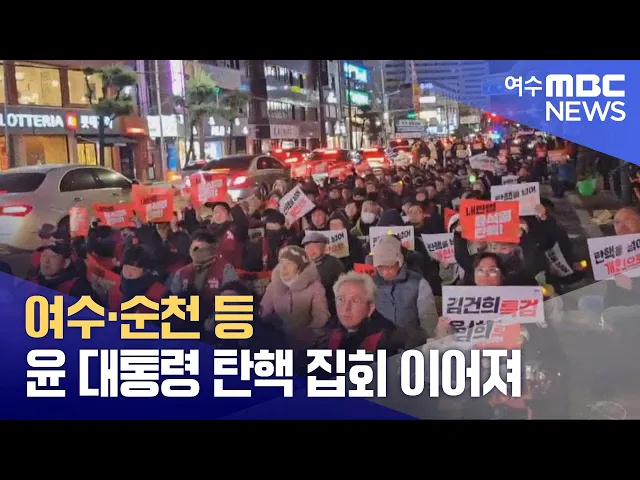 윤석열 대통령에 대한 탄핵안은 부결됐지만, 지역에선 집회와 시위가 잇따르고 있습니다.여수시민 비상행동은 오늘(8) 신기동 부영3차사거리에서 윤 대통령 탄핵과 내란죄 처벌 등을 촉구했습니다.순천시민행동도어제(7) 국회 앞 상경투쟁을 전개한 데 이어내일(8) 저녁 7시 순천YMCA에서 촛불 시위를 이어갈 예정입니다.
