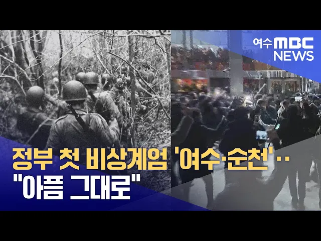 ◀ 앵 커 ▶대한민국 정부 수립 후첫 비상계엄은 지난 1948년 10월,제주 4·3 출동을 거부한국방경비대를 진압하기 위해여수와 순천 일대에 내려졌습니다.계엄령을 시작으로무차별적인 민간인 희생이 이뤄졌는데요.여순사건의 아픔이 아물지 않은우리 지역에 이번 윤석열 대통령의기습 비상계엄이 엄중하고, 무겁게 다가오는 ...