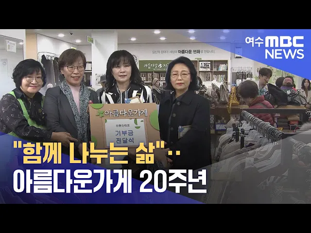◀ 앵 커 ▶기부와 봉사로사람과 자연이 함께 사는 세상을 만들어가는 아름다운가게 순천중앙점이올해 20주년을 맞았습니다.200만 개의 기증 물품으로 발생한 수익금과 기부금이우리 곁, 어려운 이웃을 위해 쓰였습니다.유민호 기자입니다.◀ 리포트 ▶빼곡하게 걸린 옷과다양한 생활 잡화까지.순천 중앙동에 자리한 아름다운가...