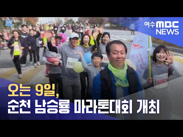 순천 남승룡 마라톤대회가 오는 9일 개최됩니다.올해로 24회째를 맞은 이번 대회에는 5년 만에 풀코스가 추가돼지난해보다 3천 4백 명 증가한8천 5백 명이 참가합니다.순천시는 대회 당일 오전 8시 반부터 오후 2시까지 팔마오거리 인근 도로를 포함해 주요 도로에 차량 진입을 통제한다며대중교통을 이용해 줄 것을 당부했...