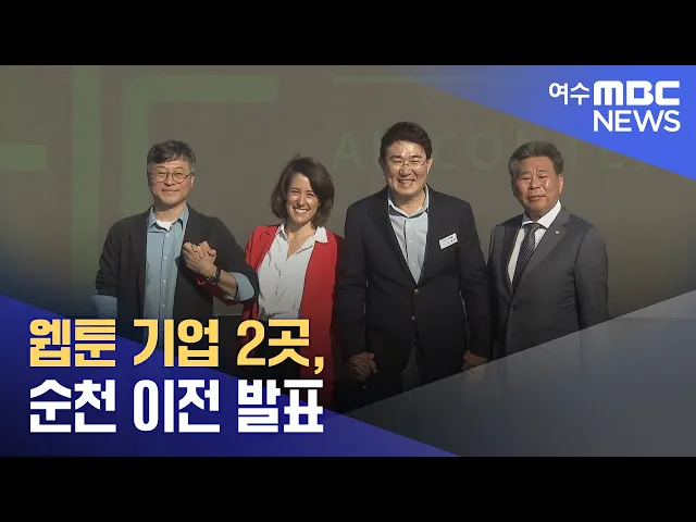 웹툰 기업 두 곳이 순천으로 이전합니다.웹툰 기업 '케나즈'와 '오노코리아'는오늘(3) '글로벌 콘텐츠 페스티벌' 행사에서 본사 이전 방침을 발표했습니다.'오노코리아'는올 연말까지 서울에 있는 한국지사를 순천으로 이전하고, '케나즈'도 내년 상반기까지본사 소재지와 웹툰 제작 기반을 순천으로 옮기기로 했습니다.한...