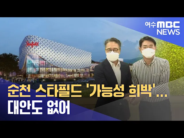 ◀ 앵 커 ▶노관규 순천시장의 핵심 공약인대규모 복합 문화시설 유치가 진전을 보이지 않고 있습니다.임기 초반부터 추진했던 스타필드 유치는사업자 측이 회의적인 입장을 보여 실현 가능성이 희박하고,이를 대체할 사업도 현재로서는 없는 상태입니다.문형철 기자입니다.◀ 리포트 ▶노관규 순천시장이 후보 시절부터 내세웠...