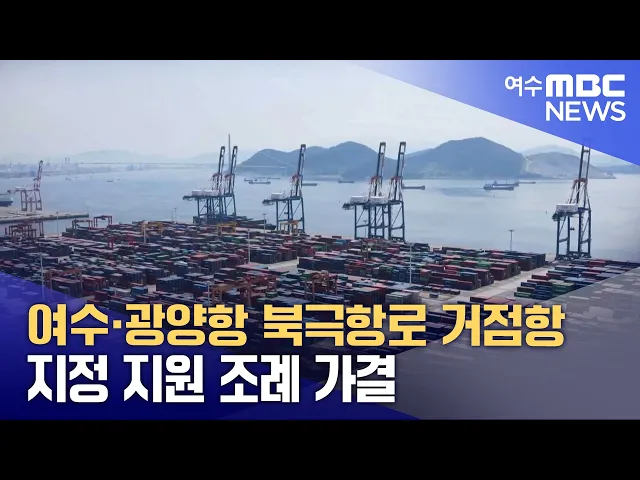여수시 북극항로 거점항 지정 지원을 위한 행정적 근거가 새롭게 마련됐습니다.여수시의회는 제254회 임시회 제2차 본회의에서 글로벌 물류 환경 변화에 대응하고 시 행정이 국가 차원의 여수광양항의 북극항로 거점항 지정에 선제적으로 행정 지원을 할 수 있는 근거가 될 '여수시 북극항로 거점항 지정 지원 조례안'을 최...