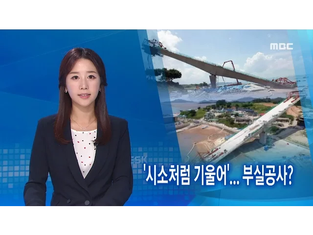 ◀ANC▶영광 칠산대교 사고 소식 전해드렸는데요.공사 중인 다리가 시소처럼 기울면서부실공사 의혹이 일고 있습니다. 익산지방국토관리청은 전면 감사에 착수할 예정입니다.이계상 기자입니다. ◀VCR▶상판 한 쪽이 시소처럼 기울어버린칠산대교 공사현장..공사는 60 미터 간격으로교각 14개를 세...