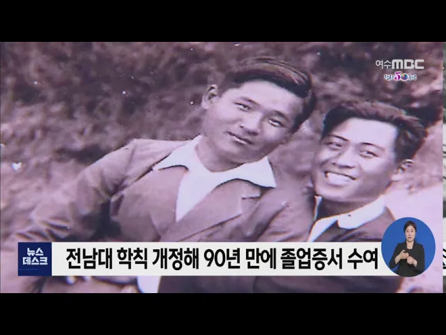 ◀ANC▶내일(15)은 광복 75주년입니다. 광복절을 기념해 전남대학교가 일제강점기 당시 항일운동을 하다 제적된 독립투사들에게 명예졸업증서를 수여하기로 했습니다. 무려 90년만에 한을 풀게 된 셈입니다. 조희원 기자입니다. ◀VCR▶흑백사진 속 검은색 차이나카라 교복을 입은 남성. 고 이기동 씨가 여수수산공립학...