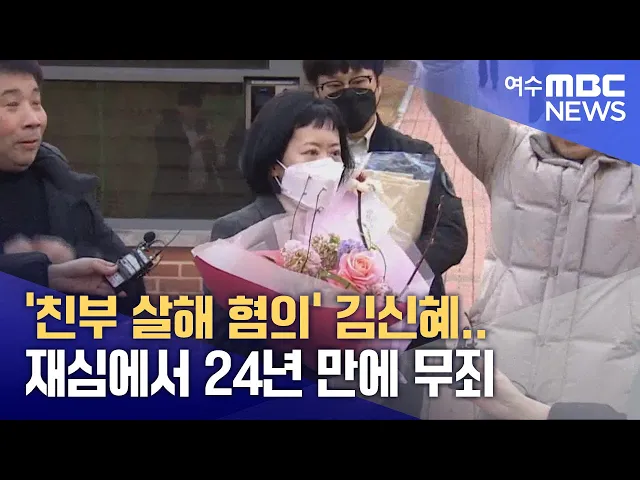 ◀ 앵 커 ▶아버지를 살해한 혐의로 무기 징역을 선고받고 복역하던 김신혜 씨가24년 만에 재심에서 무죄를 선고받았습니다.재판부는'범죄사실의 증명이 없다'는 점을이유로 들었습니다.김규희 기자가 보도합니다.◀ 리포트 ▶24년 만에 무죄 선고를 받고교도소 문밖으로 나오는 김신혜 씨.마중 나온 동생과 인사하고, 취재진 ...