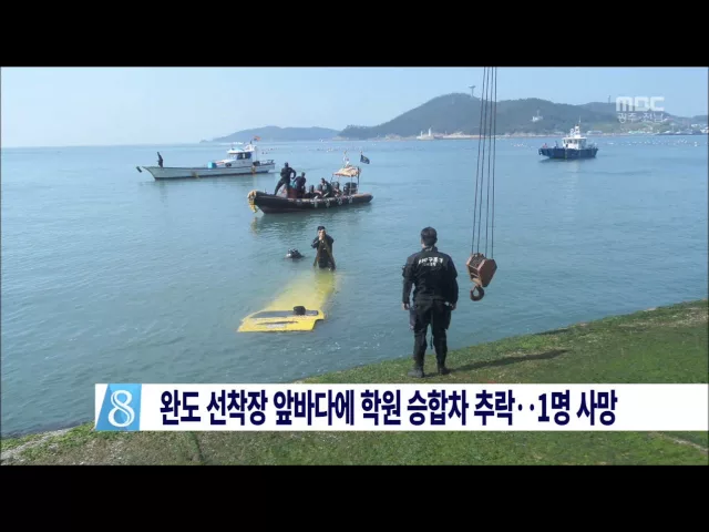 통합]완도 앞바다에 학원 승합차 추락..1명 사망