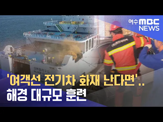 ◀ 앵 커 ▶최근 전기차 화재가 잇따르고 있습니다.바다 한가운데 승객을 태운 여객선에서 전기차 화재가 일어난다면 대형 인명 피해로 이어질 수 있는데요.완도 해상에서 열린 여객선 내 전기차 화재 상황을 가정한 합동 대응 훈련을 김규희 기자가 취재했습니다.◀ 리포트 ▶지하주차장에 세워진 전기차에서 일어난 불이 순식...