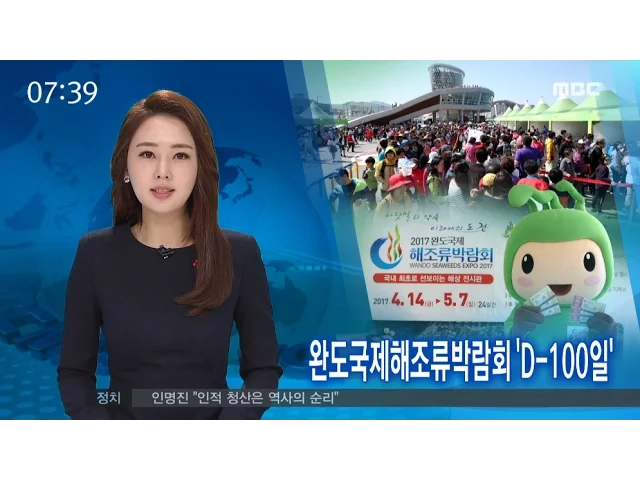 ◀ANC▶ 2017 완도국제해조류 박람회가백 일 앞으로 다가왔습니다.국내 최초로 선보이는 해상 전시관 등을 통해 우수한 우리 해조류를 세계에 알리겠다며준비 작업에 박차를 가하고 있습니다. 김진선 기자입니다. ◀END▶ ◀VCR▶ 3년 만에 다시 열리는완도 국제해조류박람회. 개막까...