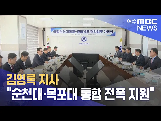 김영록 전남지사는 목포대와 순천대가 통합에 합의한 것은 역사적 쾌거라며 전폭적인 지원을 약속했습니다.김지사는 오늘(18일) 전남도청에서 기자간담회를 갖고 "지난 15일 밤 역사적 쾌거가 이뤄졌던 보고를 받았을 때 너무도 가슴이 떨리고 정말 감격했다"라며 "나라 전체적으로 봐도 굉장히 큰 선도적인 선례를 만들었...