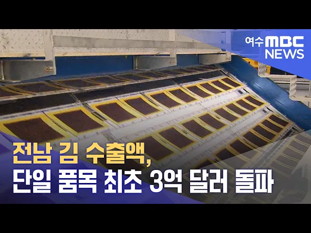 전남 김 수출액이 수산물 단일 품목으로는 처음으로 3억 달러를 돌파했습니다.올해 지난달 말까지 우리나라의 김 수출액은 8억 5천만 달러로,이 가운데 36%인 3억 600만 달러가전라남도 김 수출액으로 나타났습니다.전라남도는 김 수출액7억 달러 조기 달성을 목표로기후변화 대비 신품종 종자 개발과신규 어장 면적 확대 ...