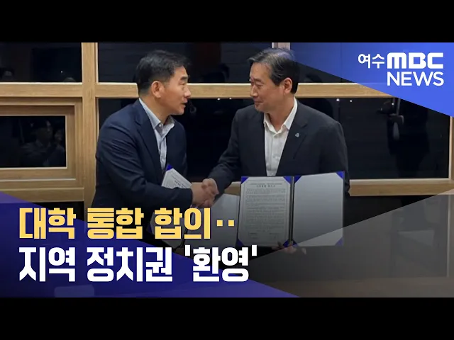 순천대와 목포대가 대학 통합과 통합의대 추진에 합의하면서 지역 정치권이 환영의 뜻을 내놨습니다.김영록 전남지사는 입장문에서양 대학의 합의는 정부 정책에 부합하고도민 건강권과 생명권을 확보할 수 있는최적의 대안이라고 밝혔습니다.노관규 순천시장은 자신의 SNS에넘어야 할 산은 많지만,통합의대는 환영할 만한 ...