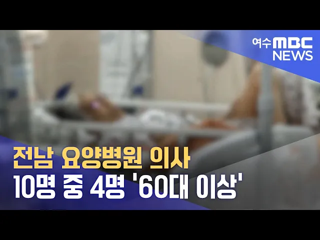 전남 지역 요양병원 의사10명 중 4명은 60대 이상이며,의사들의 평균 나이도 58.2세에 달하는 것으로 조사됐습니다.전남도의회 최병용 의원에 따르면"전남 392개 요양병원 의사 구성을 보면60대 이상이 172명, 50대가 82명30에서 40대가 138명으로 의료 인력에있어서도 고령화를 보이고 있다"고 지적했습니다.이어 "의사들...