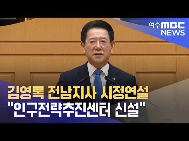 김영록 전남지사가 오늘(15일) 전남도의회 시정연설에서 '인구전략센터 신설'구상을 밝혔습니다.김 지사는 "인구전략추진센터"를 신설해 지역 맞춤형 인구정책을 체계적으로 발굴하고, 도정 주요 사업들을 인구문제 관점에서 재조명하는 ‘인구영향평가’를 도입하겠다고 밝혔습니다.전남도의회 제2차 본회의에 제출된 전남도...