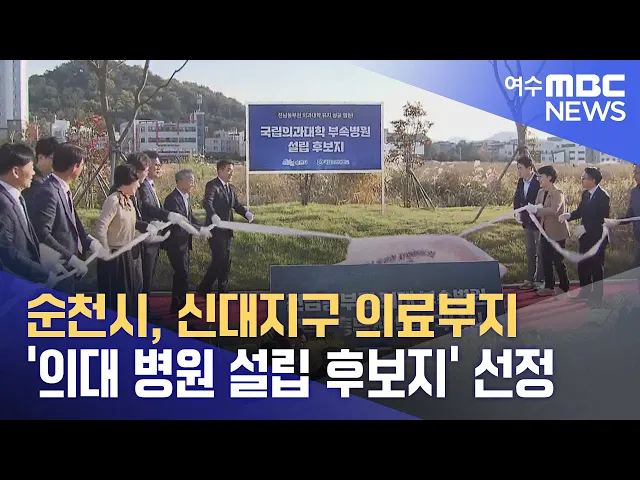 순천시가 신대지구에 있는 의료부지를 의대 부속병원 설립 후보지로 선정했습니다.순천시는 오늘(13)순천대 총장과 지역 국회의원 등이 참석한 가운데 의대 부속병원 설립 후보지 선정 기념식을 열고의과대학 유치에 대한 의지를다시 한번 밝혔습니다.순천시는 신대지구 의료부지가 전남 동부권과 경남 서부권을 아우를 수 ...