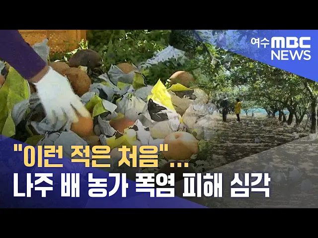 ◀ 앵 커 ▶전국적으로 기후 변화로 인한농작물 피해가 계속 발생하고 있습니다.올해는 기록적인 폭염이 가을까지 이어져, 그 피해가 더 큰데요.특히 우리 지역은 배 농가들이 어려움을 겪고 있습니다.김초롱 기자의 보도입니다. ◀ 리포트 ▶나주 금천면에 있는 배 농가입니다.배를 감싼 봉지를 펼쳐보니,배 한쪽이 짙게 얼룩...