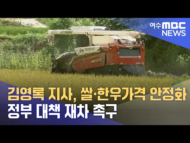 김영록 전남지사가 쌀값 최소 20만 원대 유지와한우가격 정상화를 위한 정부의 대책마련을재차 촉구했습니다.김 지사는 정부가 발표한 쌀과 한우 수급 안정대책에 쌀 재고량 대책이 빠진 것에 유감을 나타내며 올해 산 신곡의 경우 40만 톤 시장격리,한우가격 안정화를 위해 사료구매자금 무이자,상환기간 연장 등을 요구했...