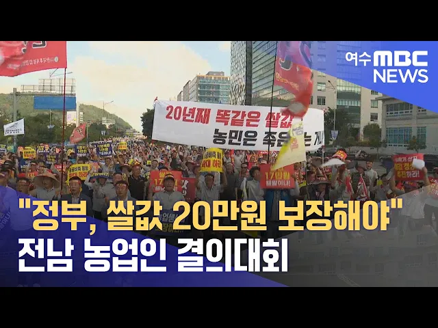 산지 쌀값이 17만 원대까지 떨어진 가운데농민들의 반발이 거세지고 있습니다.한국후계농업경영인전라남도연합회는오늘(10) 전남도청 앞에서 결의대회를 열고,정부에 수확기 쌀값 안정을 위한 대책 마련을 정부에 촉구했습니다.이들은 정부의 소극적인 대응으로 쌀값 하락을 막지 못해 농가는 생산비도 건지지 못할 상황에 ...