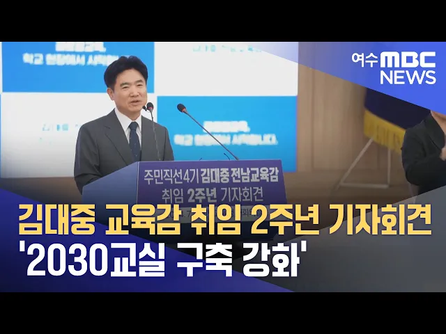 김대중 전남도교육감은 오늘(2일) 취임 2주년 기자회견을 열고전반기 2년의 가장 큰 성과인 '글로컬 미래교육 박람회'에서 얻은 자신감으로, '2030교실'을 전남의 모든 학교에 구축하겠다고 밝혔습니다.김대중 교육감은 교사가 수업에 집중하도록 역량을 집중하는 것이 필요하다며 교육청 정책사업 정비 등으로 업무를 경감...