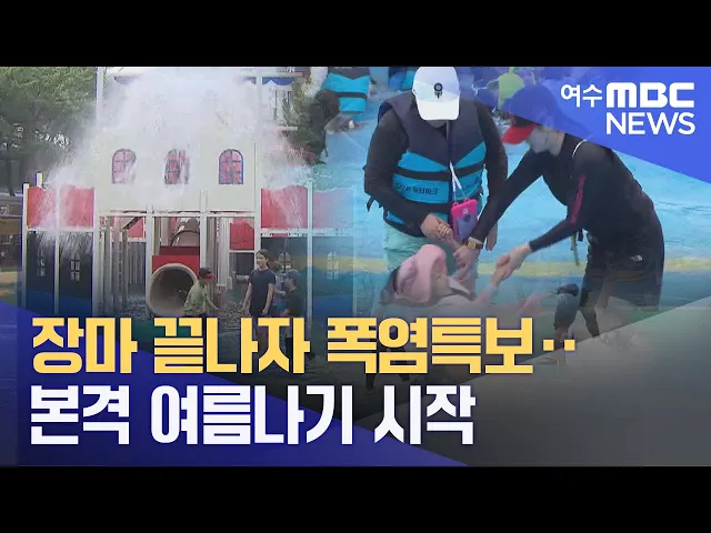 ◀ANC▶ 긴 장마가 끝나자마자, 전남 모든 지역에는 폭염 특보가 발효됐습니다. 무더위가 시작된 가운데, 시민들은 물놀이장을 찾는 등 본격적인 여름나기에 나섰습니다. 유민호 기자입니다. ◀VCR▶ 긴 장마가 끝나고 폭염주의보가 내린 날. 양산을 쓰고 부채질을 해보지만, 더위가 쉽게 가시지 않습니다. 습도까지 높아...