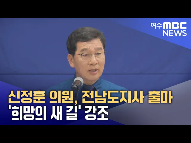 신정훈 더불어민주당 국회의원이오늘(8) 전남도의회에서 기자회견을 갖고내년 전남도지사 출마를 공식 선언했습니다. 신 의원은 '지난해 전남의 경제경장률은 전국 17위로 꼴찌였고, 도민의 삶이 나아질 기미가 없다며 전남에 희망의 새 길을 내겠다'고 강조했습니다. 또, 도민주권 정부를 만들고 농업농촌 문제 해결을 위...