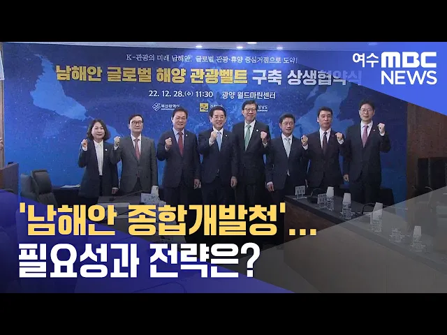 ◀ANC▶ 남해안 개발을 위해 전라남도가 최근 강조하고 있는 것이 '종합 개발청' 신설입니다. 체계적이고 신속한 사업 추진을 위해서는 독립된 컨트롤타워가 필요하다는 건데, 정부 설득과 법 제정 등 넘어야 할 산이 많습니다. 문형철 기자입니다. ◀VCR▶ 남해안을 끼고 있는 전남과 경남, 부산 등 3개 시˙도가 세계적...