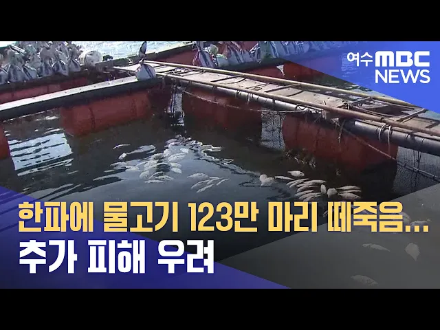 ◀ANC▶ 올 초 몰아닥친 겨울 한파에 전남 여수 양식장에서 물고기 123만 마리가 떼죽음을 당했습니다. 여전히 저수온이 지속되고 있는 데다, 살아있는 물고기의 상태도 좋지 않아 추가 피해가 우려됩니다. 보도에 김단비 기자입니다. ◀VCR▶ 양식장 칸 칸마다 물고기들이 하얀 배를 드러낸 채 물 위를 떠다닙니다. 바닷...