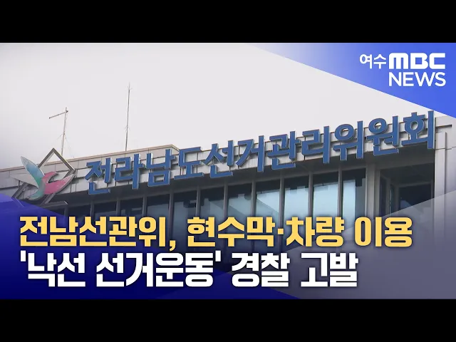 현수막과 차량 등을 이용해 낙선 목적의 선거운동을 한 혐의로 시민단체 관계자가 경찰에 고발됐습니다.전라남도 선거관리위원회는 선관위의 시정 명령에도 불구하고혐오시설 설치에 반대한다는 내용과입후보 예정자인 현직 시장의 이름을 함께 기재한 현수막을 아파트 등에 게시하고확성장치가 설치된 차량을 동원해 낙선...